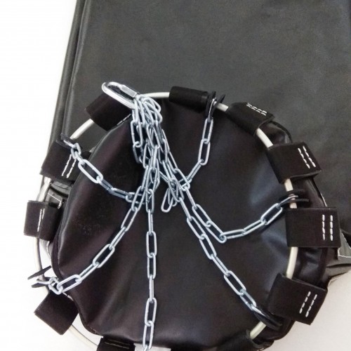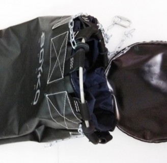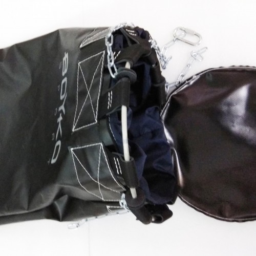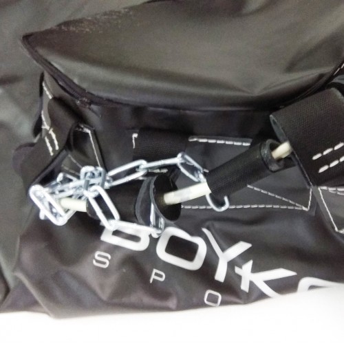 Узел крепления состоит из стального кольца по диаметру мешка, цепей и карабина.