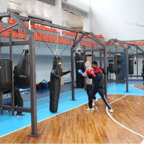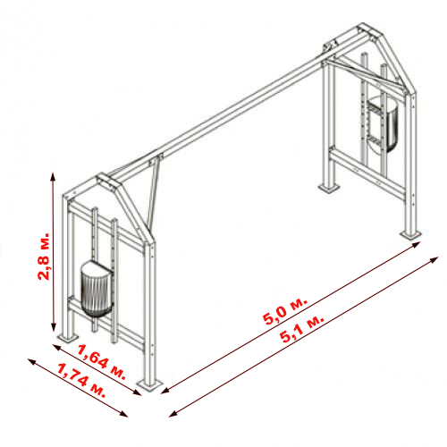 Стойка для боксерских мешков профессиональная №1 (на 3 мешка, 2 подушки) (Ш:Д:В): 1,64:5,0:2,8 м.